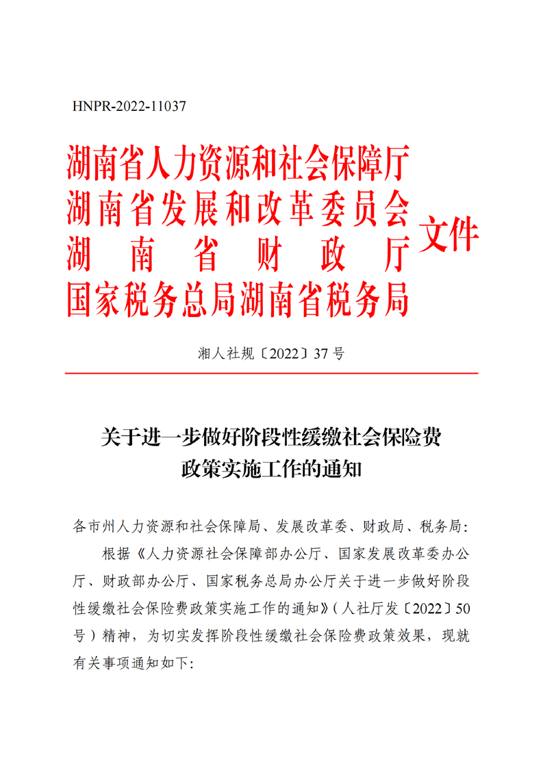 湖南印發(fā)《關(guān)于進(jìn)一步做好階段性緩繳社會(huì)保險(xiǎn)費(fèi)政策實(shí)施工作有關(guān)問題的通知》