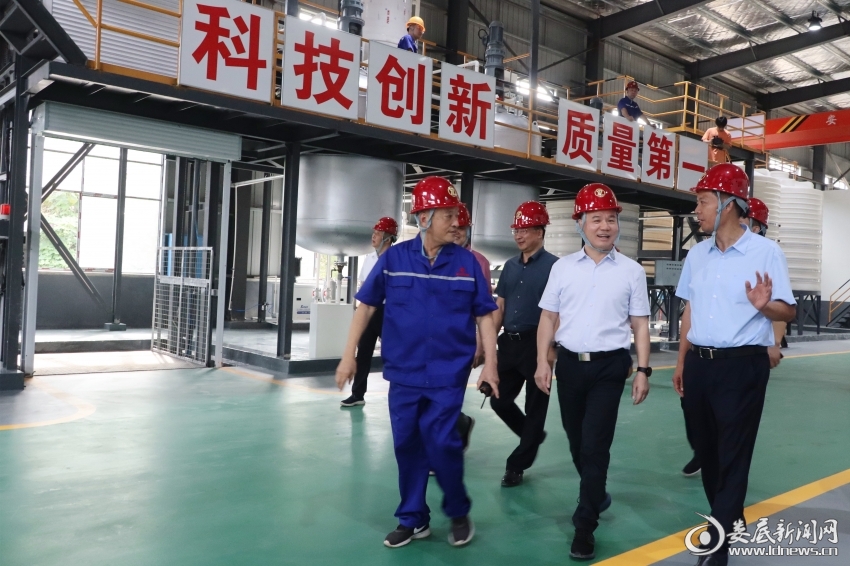 (湖南永澤冶金爐料有限公司、湖南永晟福新材料科技有限公司硅鋼表面涂層液項目竣工投產(chǎn)儀式后,李彥文一行參觀項目生產(chǎn)車間)